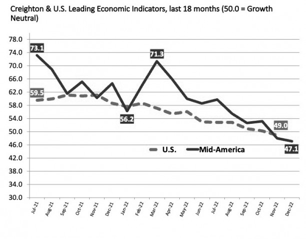 December Mid-America Business Conditions Index “flashing recession warnings” for 2023, says economist Ernie Goss of Creighton University. (Courtesy of Creighton University)