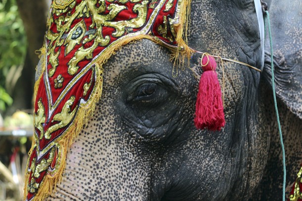 Female elephant Mo Mo stands during a ceremony to mark her 62nd birthday at the Yangon Zoological Gardens Sunday, Oct. 18, 2015 in Yangon, Myanmar. The pachyderm originally from Myanmar’s eastern Kayah state was brought to the zoo in 1961 when she was seven-year-old. Mo Mo is one of the most popular animals at the more than 100-year-old zoo and she entertains children by her weekly performances. (Khin Maung Win / AP Photo)