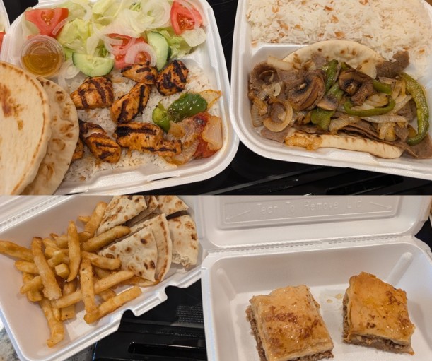 When I arrived home, my wife went for the gyro and I had the chicken kebab. The most stunning thing of this entire experience was driving home 15 minutes and still biting into hot, moist chicken and rice. I was wholly bracing for slightly dried out food, but each bite was soft and succulent. The second surprise was how my daughters turned down quesadillas made of chopped gyro meat and some benign white cheese. They were delicious, but what do kids know? They did devour the fries – those crispy crunchy battered fries you’d expect from a Greek-adjacent place. I brought my girls back with the baklava. Sticky sweet layers of flaky pastry and chopped nuts? They didn’t stand a chance.