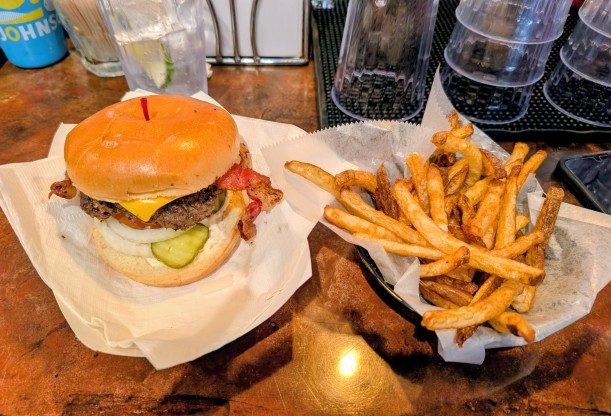 Stella’s classic burger and fries. (Photo by Matt Hebert)