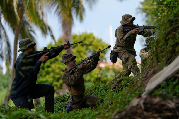 Panamanian and U.S. military personnel take part in joint drills at Fort Sherman, a former U.S. Army base in Colon, Panama, Wednesday, Oct. 22, 2025. (Matias Delacroix / AP Photo)
