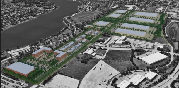 Shown here is a potential development site of a business and industrial park envisioned west of Eppley Airfield in northeast Omaha. This tract is included within the larger boundaries of a proposed North Omaha inland port authority district that is driving Legislative Bill 164. (Courtesy of Lamp Rynearson)