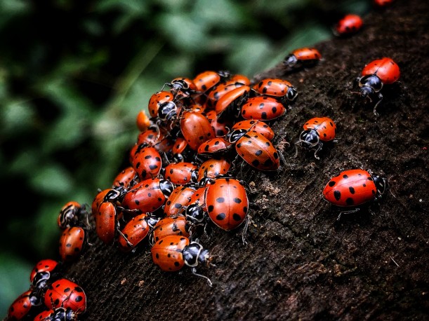 Ladybugs gather on a log at Reinhardt Redwood Regional Park in Oakland, Calif. (Jose Carlos Fajardo / Bay Area News Group via AP Photo