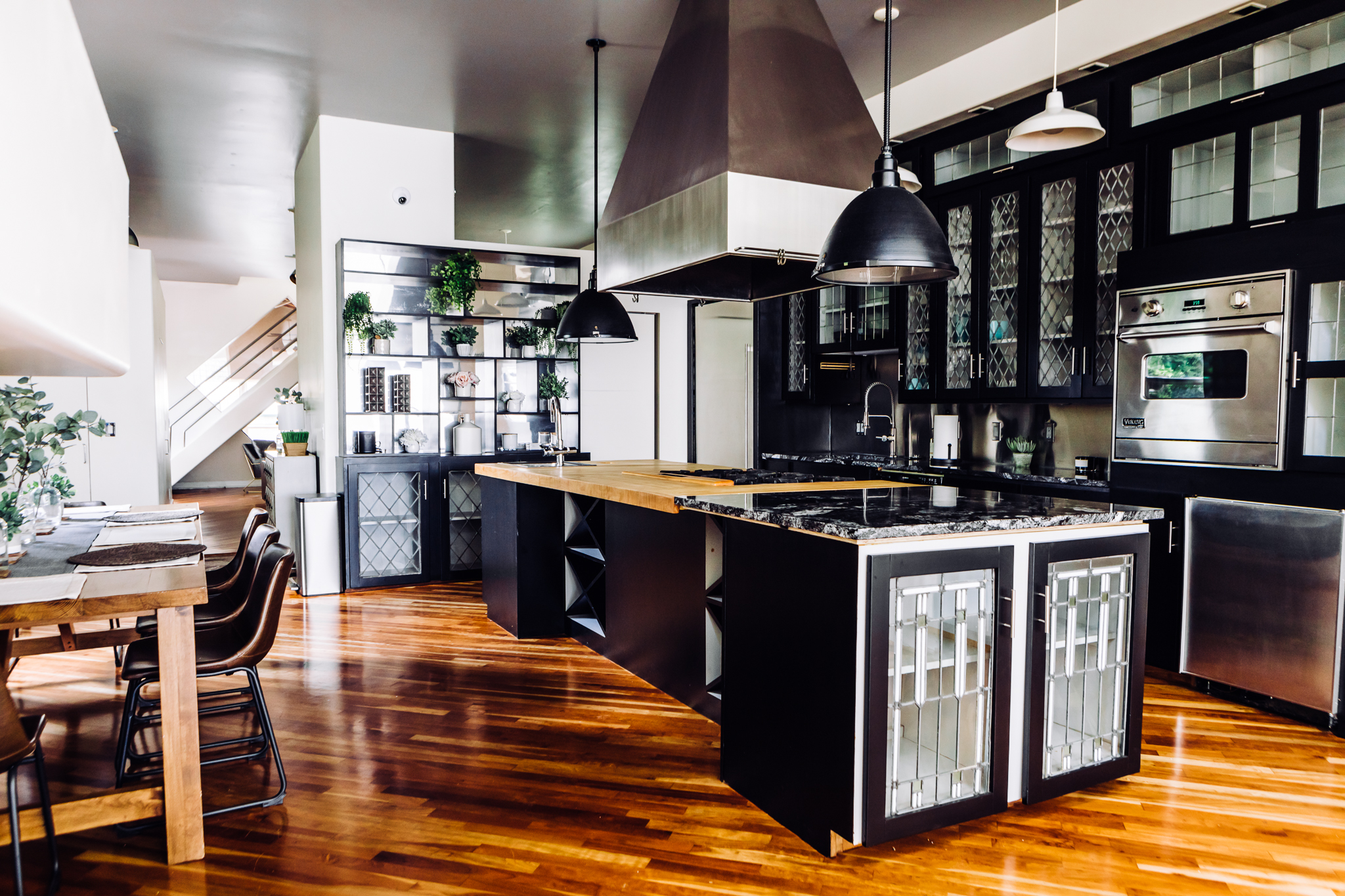 That same mingling of past and present is evident in artistic touches in the space. The mosaic tile work in the entrance of the guest house was created by the previous owner, an artist. Current neighbor and artist Deb Armitage created the glass features in the state-of-the-art kitchen that features a six-range oven in the main house. Ironwork in The Bohemian Gardens looks similar to ironwork in a tiny garden just off of the Passageway in the Old Market, hinting at the possibility of a shared past.