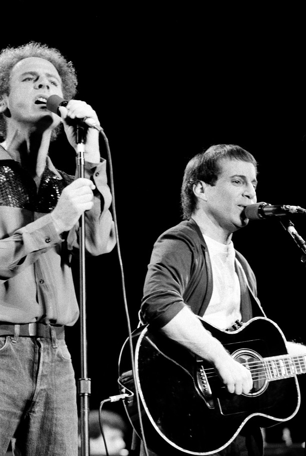 Art Garfunkel (left) and Paul Simon perform at Shea Stadium in New York City, Saturday, Aug. 6, 1983. (AP Photo / Dave Bookstaver)