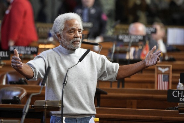 Nebraska State Sen. Ernie Chambers of Omaha addresses lawmakers on the opening day of the Nebraska legislative session, in Lincoln, Neb., Wednesday, Jan. 8, 2020. (Nati Harnik / AP Photo)