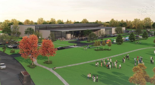 Wolf Pack Sports Foundation’s cheer athletics facility, as envisioned at 202nd Street and Nebraska Highway 370 in Gretna. The City of Gretna is a co-applicant in seeking state assistance through the Sports Arena Facility Financing Assistance Act. (Courtesy of Alley Poyner Macchietto Architecture via Nebraska Examiner)