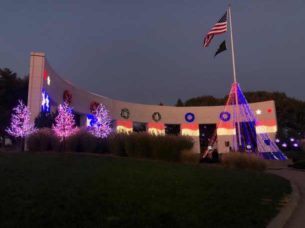A patriotic display of red, white and blue lights recognizes United States veterans and celebrates the holiday season.