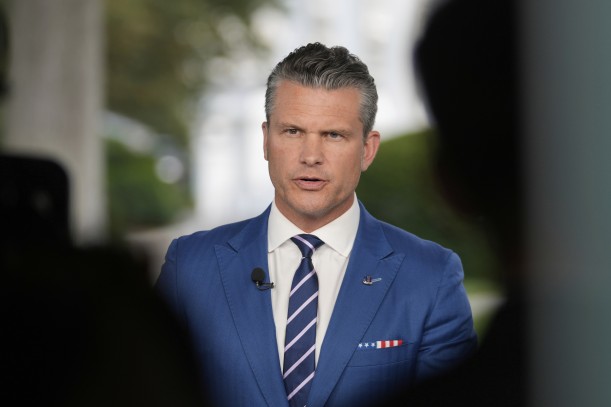 Defense Secretary Pete Hegseth speaks during a television interview outside the White House Thursday, Aug. 7, 2025, in Washington. (Mark Schiefelbein / AP Photo)
